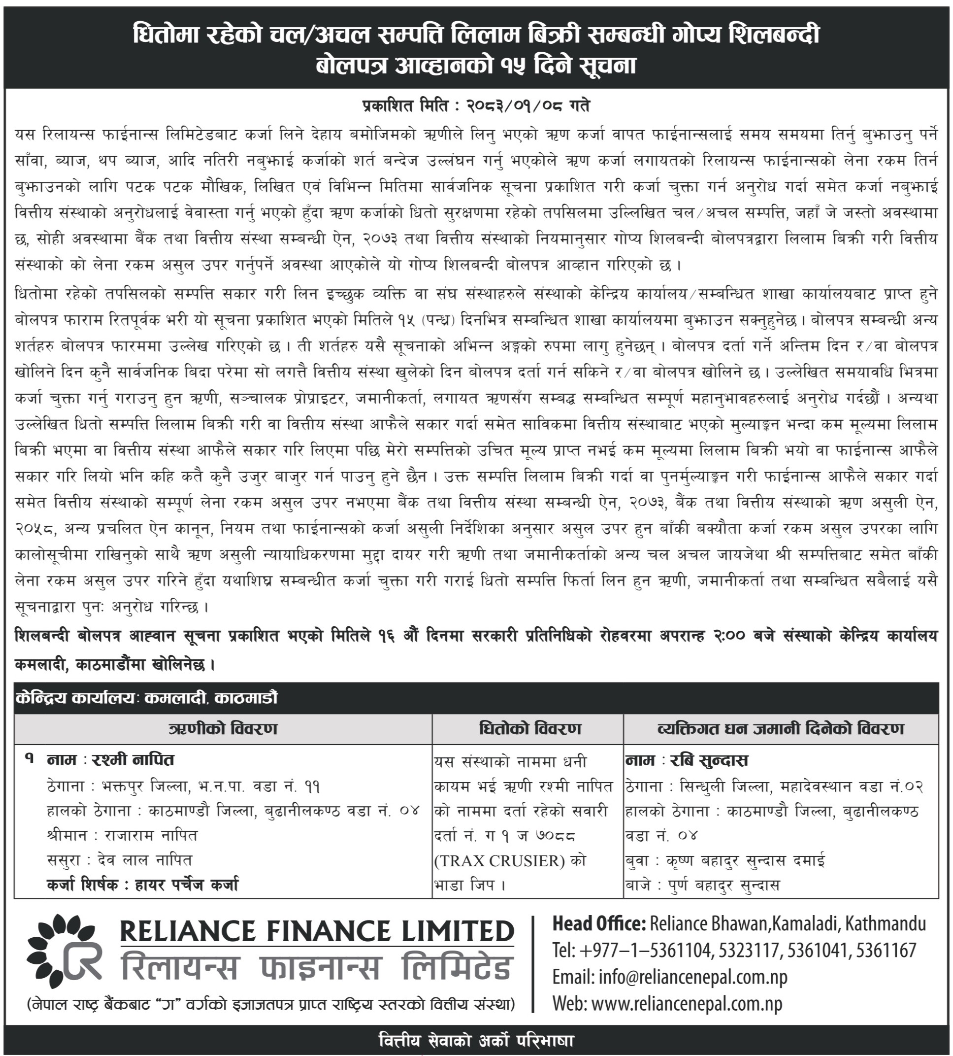 15 Days Auction Notice Published (2083-01-08)