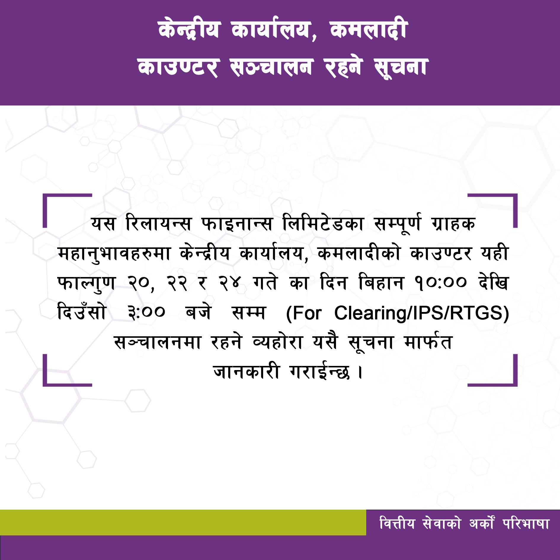 Reliance Finance Limited, a “C” class financial institution, incorporated in the year 2066 B.S and licensed by Nepal Rastra Bank to undertake financial services, has established itself as one of the leading finance company of Nepal.
