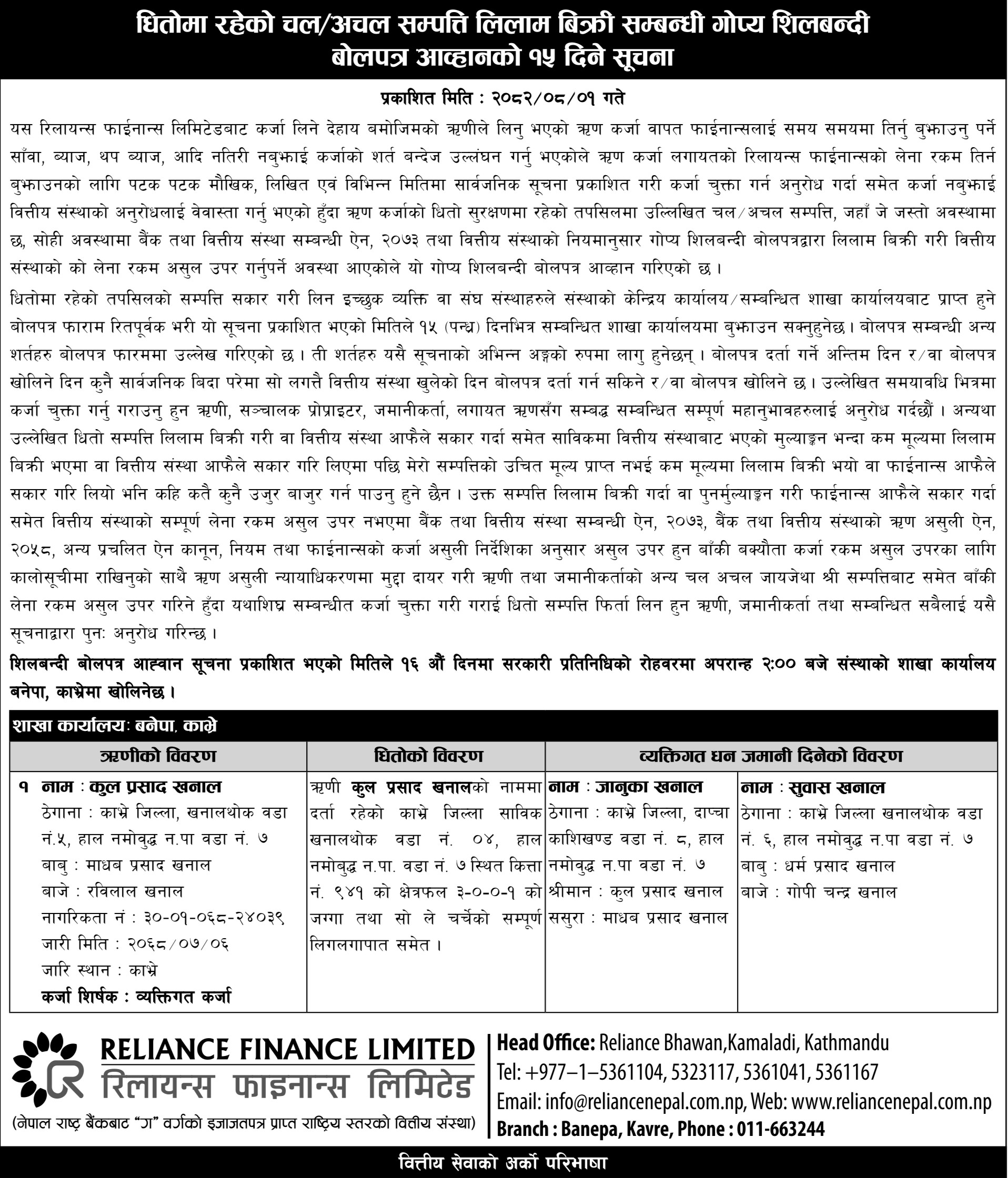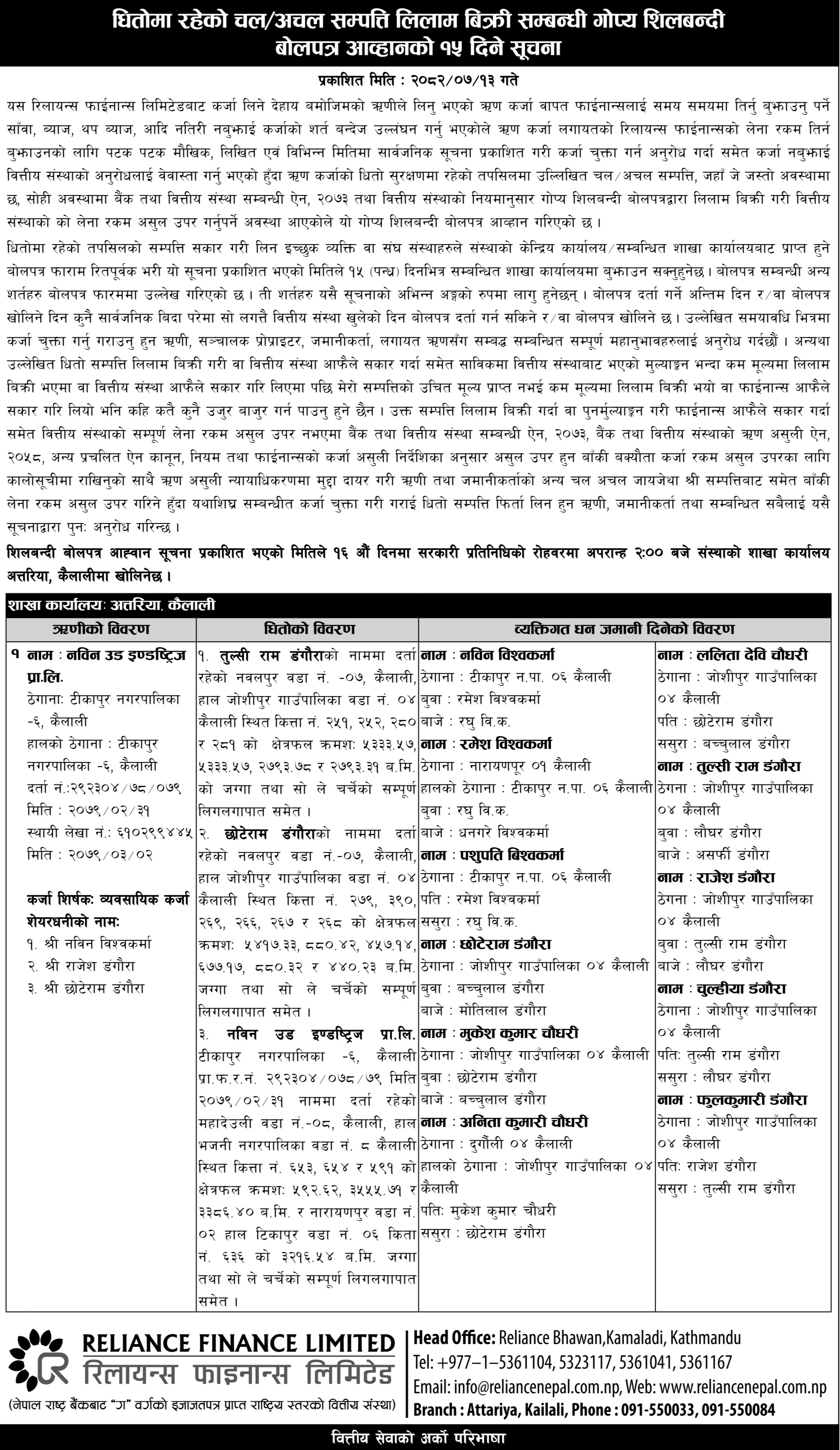 15 Days Auction Notice Published (2082-07-13)