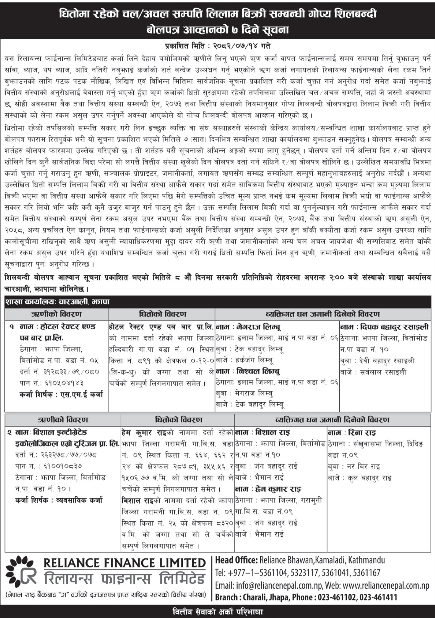 7 Days Auction notice Published (2082-07-14)
