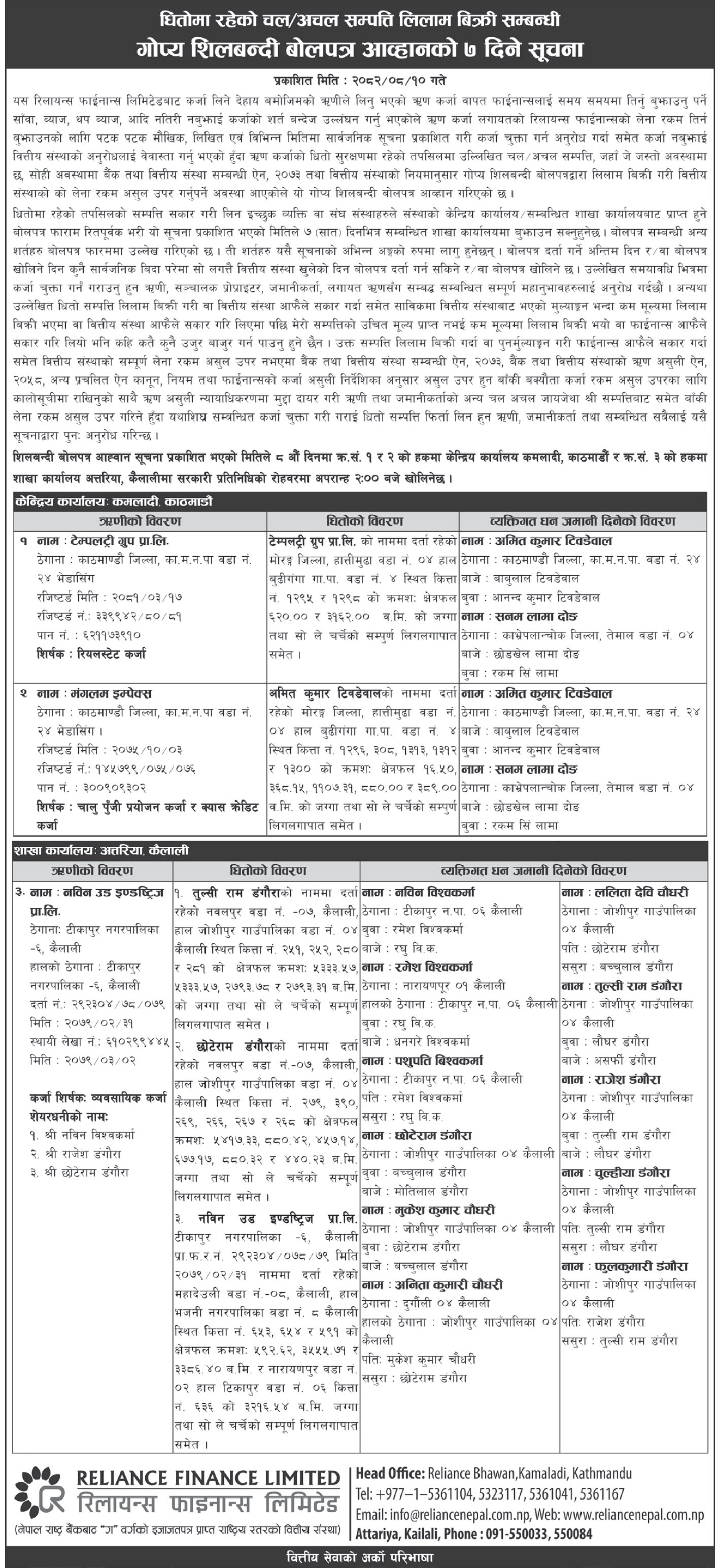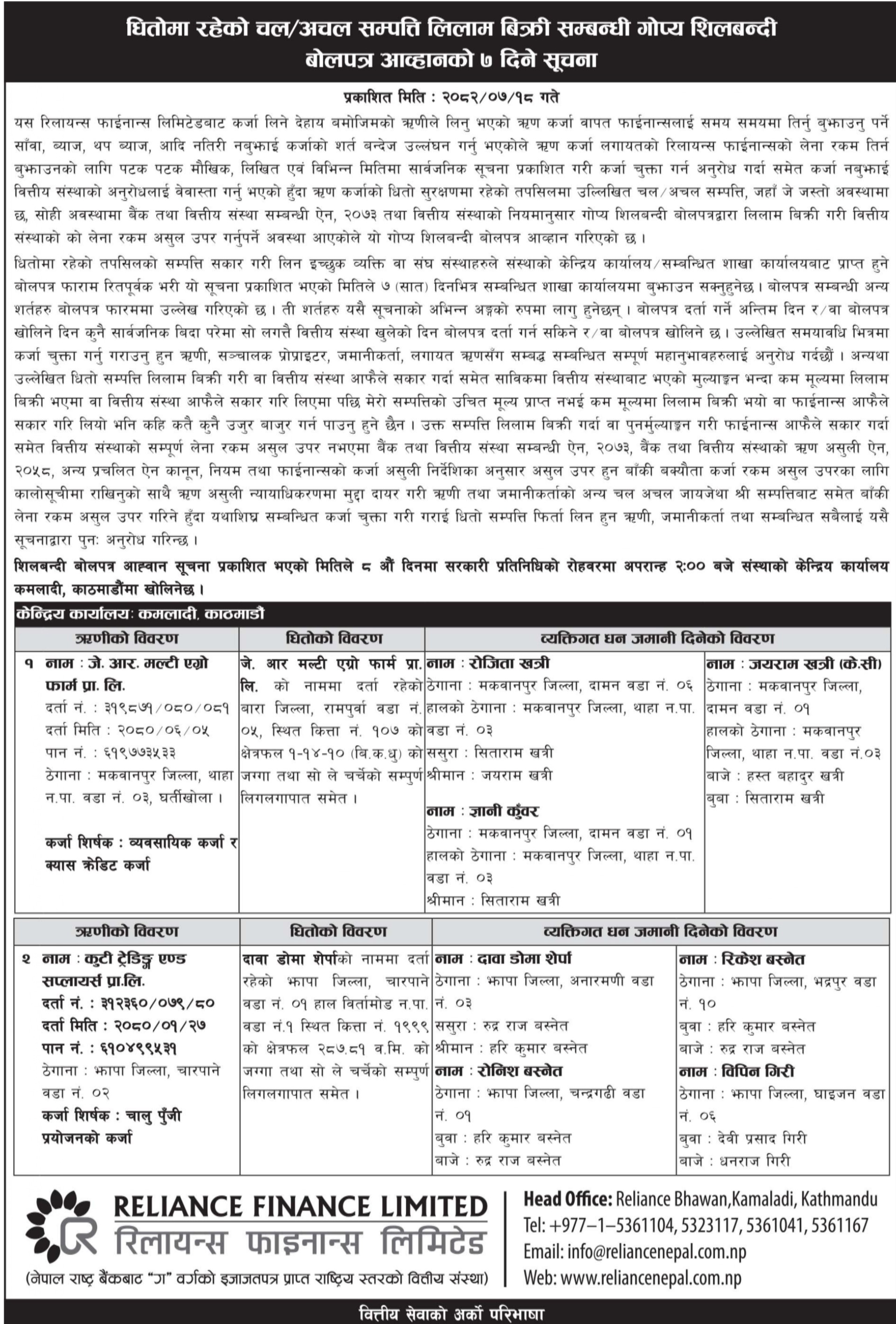 7 Days Auction Notice Published (2082-07-18)